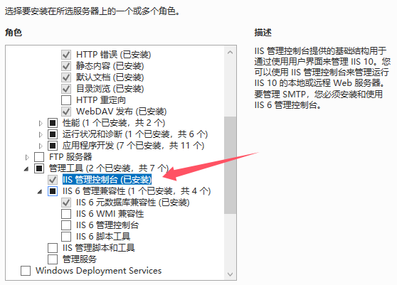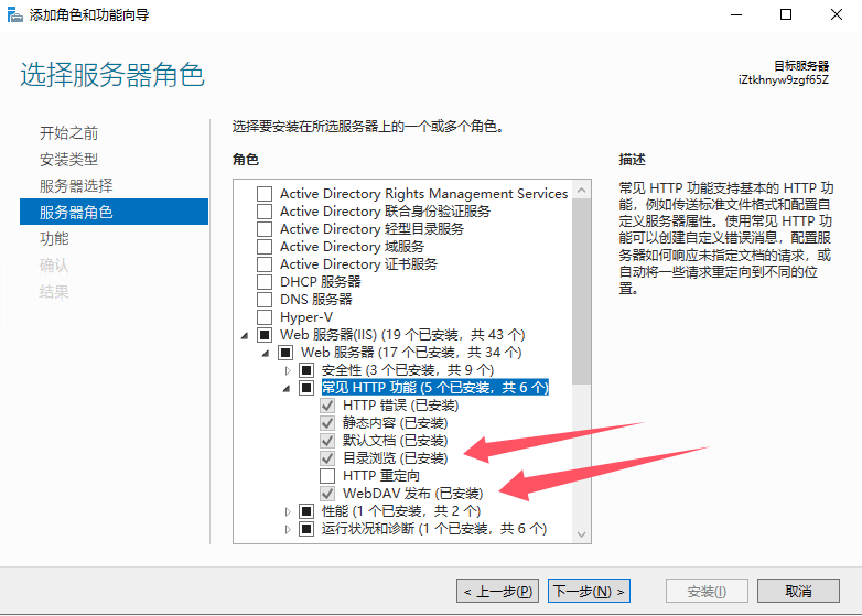 - 在角色服务列表中勾选以下关键组件: