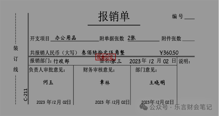 公司购买办公用品一批,现金支付价款360.5元。