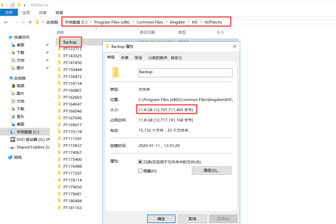 需要注意的是,每次打累积综合补丁都会在KDPatchs的Backup进行备份,像我的虚拟机这个文件夹就有11.8G。