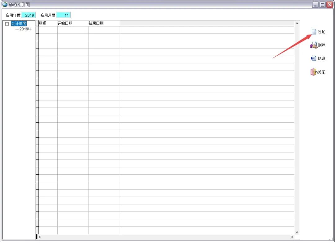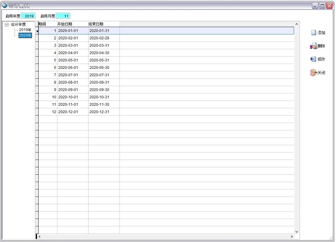 如果没有新的一年的会计期间,在基本资料-会计期间中增加