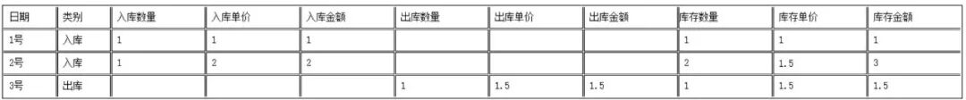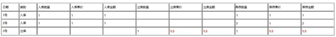 以移动加权平均法的存货计价方法为例,2号入库后该物料库存平均单价为1.5元,因此,3号出库时就按1.5元的单价出库。