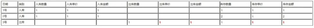 该月份做结账处理时ERP会自动调整3号的出库单价是为1,调整后的结果如下: