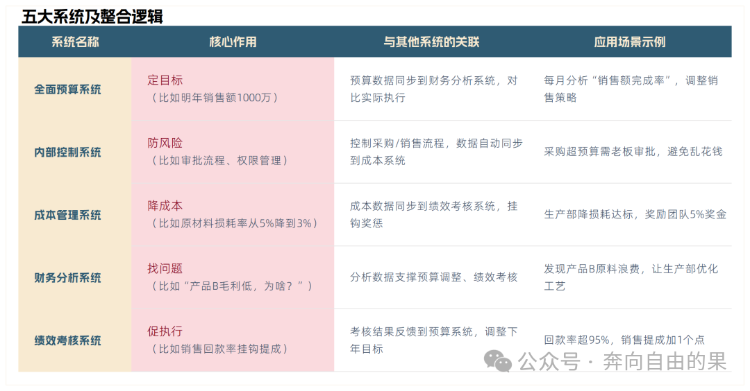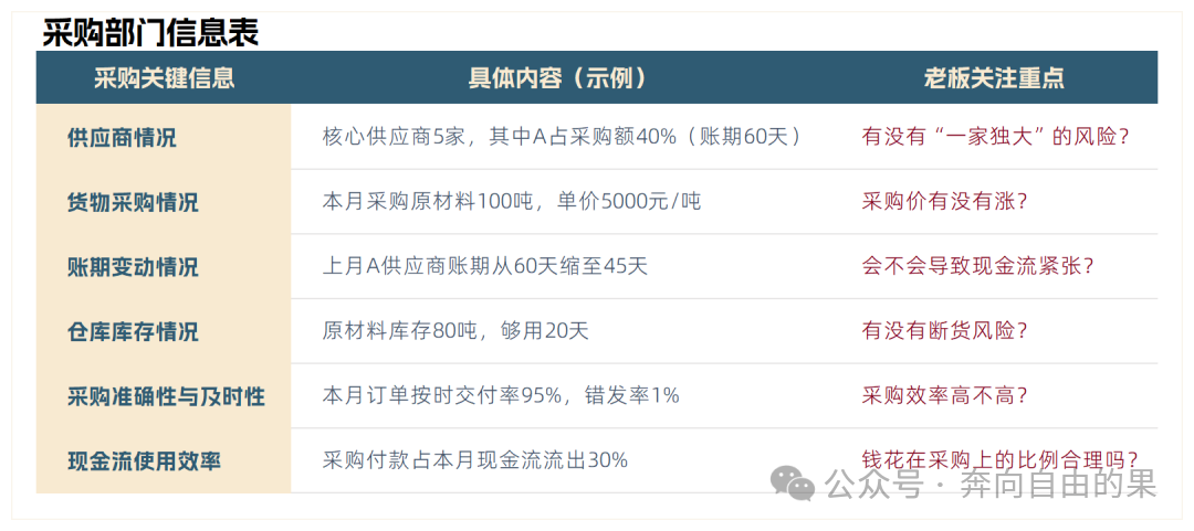 财务管理体系不是“一堆制度+几张报表”,而是“让数据跟着业务跑,让老板不用跑现场就能管公司”的工具。它的核心逻辑很简单:把分散在各部门的“碎片信息”串成“数据链条”,用表格和系统把“业务动作”翻译成“财务语言”,最终变成老板能看懂、能决策的“经营仪表盘”。 ![]() 第一步:先“摸透家底”——调研公司具体情况建体系前,必须先搞清楚“公司现在什么样”,否则设计出来的东西就是“空中楼阁”。 1. 调研流程:先聊老板,再看业务第一步:跟老板深聊:问3个关键问题—— 第二步:实地调研业务:跟着采购、销售、仓库走一遍流程—— 2. 调研重点:抓“影响财务的关键细节”采购部:供应商账期是30天还是60天?有没有“压款”的强势供应商? 销售部:客户回款周期是多久?有没有“老赖”客户? 仓库:库存周转天数是20天还是60天?有没有“压箱底”的积压货? 生产部:原材料损耗率是多少?有没有“边角料浪费”的情况? 第二步:按需“画图纸”——设计老板看得懂的信息表调研完,接下来要做**“老板专属信息表”**:把老板最关心的数据浓缩成“一张表”,让他不用翻10张报表就能掌握全局。 1. 采购部门信息表:盯紧“钱花在哪、货够不够”老板最关心采购的3件事:供应商靠谱吗?钱付得值吗?库存够不够? 用一张表整合: ![]() Excel模板提示:用“条件格式”标红异常数据,老板一眼能看到风险。 2. 销售部门信息表:盯紧“钱从哪来、客稳不稳”老板最关心销售的3件事:卖得怎么样?客户靠谱吗?钱能收回来吗? 用一张表整合: ![]() 第三步:搭“数据流水线”——让信息从基层流到老板有了信息表,接下来要建**“数据收集-汇总-分析”的流水线**,确保数据“准、快、全”。 1. 数据流程:从“基层填数”到“老板决策”闭环![]() 2. 关键:明确“谁填、何时填、填什么”基层员工:采购员每天下班前填“采购明细表”(供应商、金额、账期);销售员每周五填“客户回款表”(客户、金额、逾期天数) 部门负责人:每周一对上周数据进行汇总,标红异常(回款逾期超10天的客户等) 财务部门:每月5日前整合所有数据,生成“老板仪表盘”(用Excel透视表或BI工具,比如Power BI等等) ![]() ![]() (注:模板可直接复制到Excel,用“条件格式”设置异常标记,老板打开就能看重点。) 第四步:装“五大引擎”——让体系“活起来”光有数据还不够,得用五大系统把数据变成“管理能力”,支撑公司运营: 五大系统及整合逻辑![]() 五大系统关联逻辑图![]() 财务管理体系不是“枷锁”好的财务管理体系,不是“管着大家干活”,而是“帮大家把活干对、干好”。 -END- 阅读原文:原文链接 点晴模切ERP更多信息:http://moqie.clicksun.cn,联系电话:4001861886 该文章在 2026/1/16 12:53:27 编辑过 |