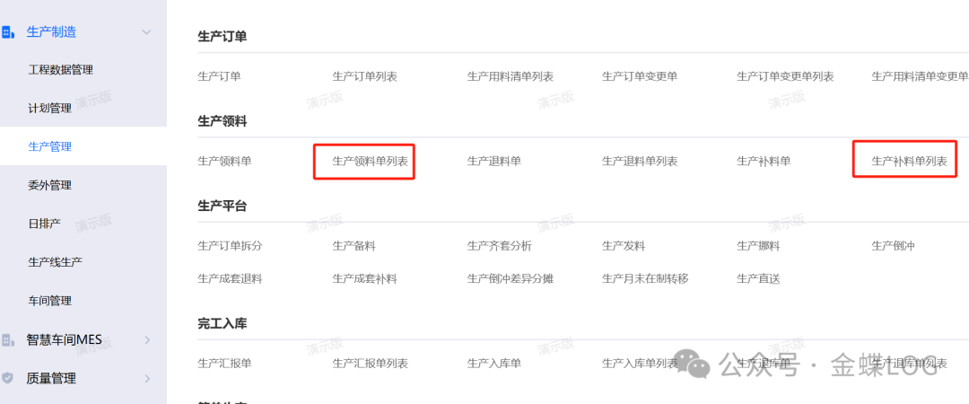 生产领料单和生产补料单在系统上有什么区别?