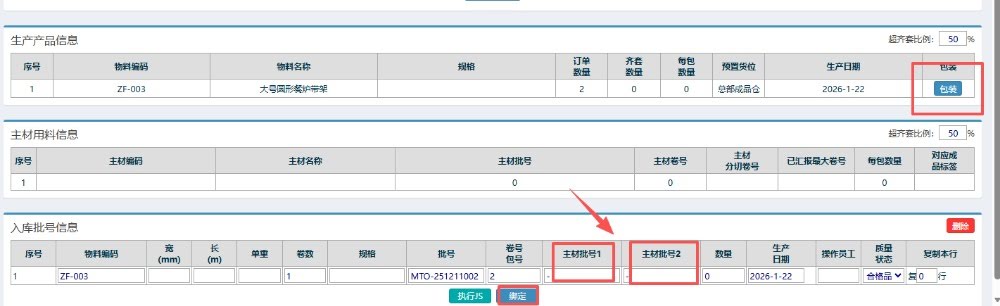 点晴模切ERP-生产入库物料包装:主材批号操作流程