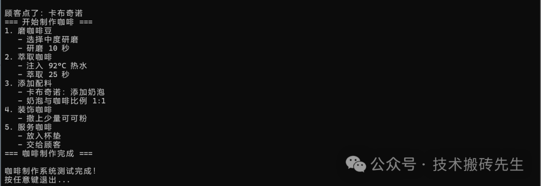 Console.WriteLine("咖啡制作系统测试完成!");