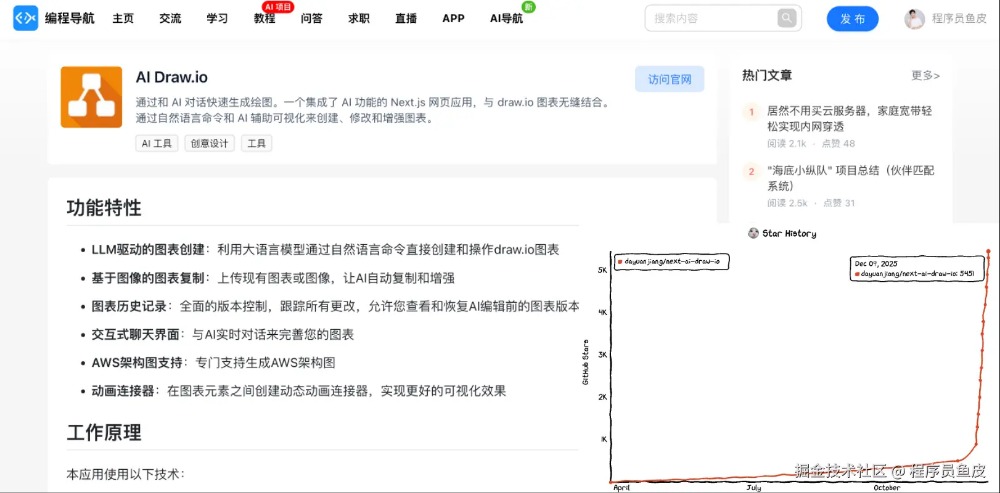 我在 编程导航 上看到了这个最近大火的 AI 画图神器,完全免费开源,短短几天就涨了 6k star,值得收藏!