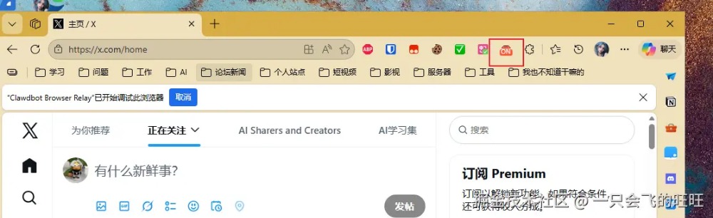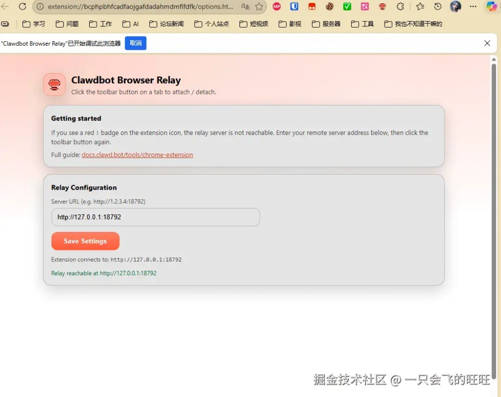 这两天看公众号都是安装教程,也没看到其他使用上的问题, 我来分享一下我的一些使用经验吧! 这几天晚上经常用OpenClaw 帮我操作点东西,结果发现浏览器又连不上了。重启 Gateway 后,我又得打开 Chrome,手动点击那个 Browser Relay 插件的图标, 这大冬天的,谁愿意起来碰电脑啊, 这让我苦恼不已! 简单介绍OpenClaw(前身为 Clawdbot/Moltbot)是一款强大的 AI 助手框架,其浏览器自动化功能让 AI 能够"看见"并"操作"网页。 本文将深入介绍 OpenClaw 的远程浏览器功能——特别是 Chrome Extension Relay 模式,以及我在使用过程中遇到的问题和解决方案。至于为嘛不用内置的浏览器功能,因为启动一个chrome我的小服务器就快顶不住了! 什么是 Browser Relay?OpenClaw 提供了两种浏览器控制模式: