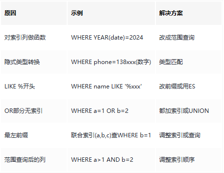范围查询(>、<、BETWEEN、LIKE)会导致后面的列无法使用索引。
