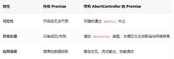 传统的 Promise 一旦启动就无法在外部“叫停”,而 AbortController 的出现,完美填补了这一空白。