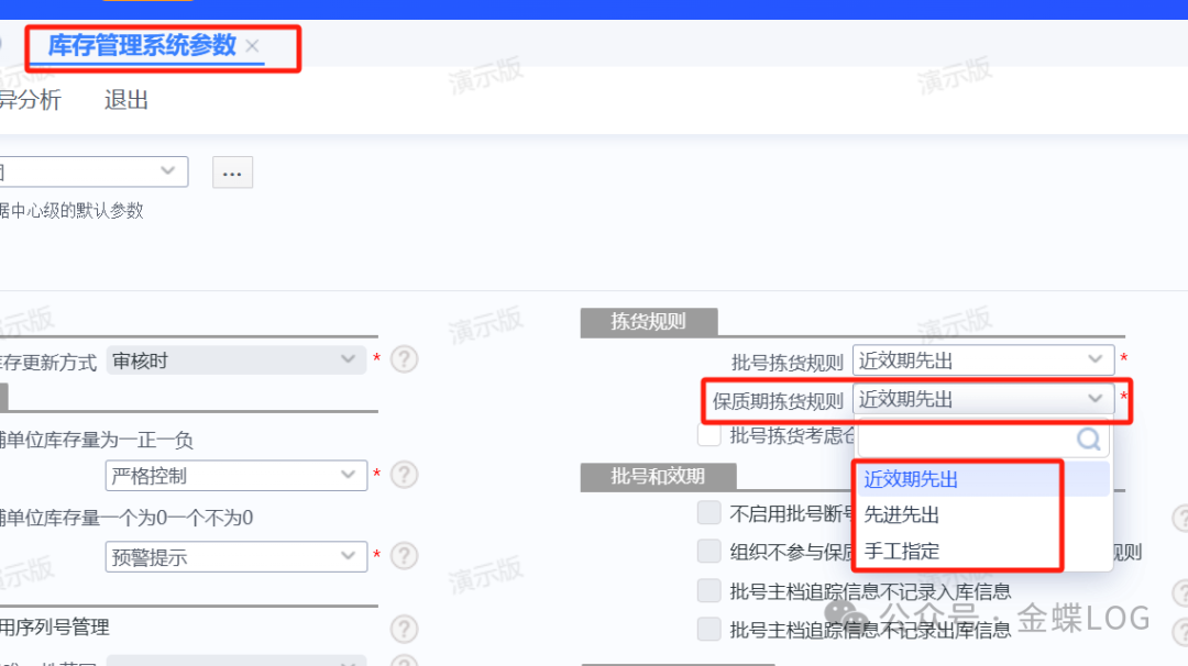 ![]() 3. 出库拣货规则出库时系统会根据【库存管理系统参数】中设置的保质期拣货规则进行匹配库存。