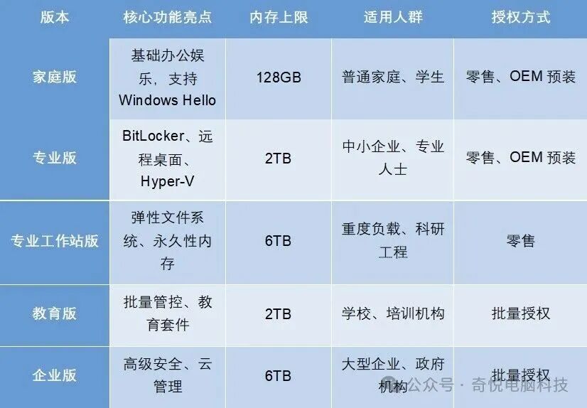 [点晴永久免费OA]Windows 不同版本怎么挑?家庭、专业、教育、企业版区别一次讲清