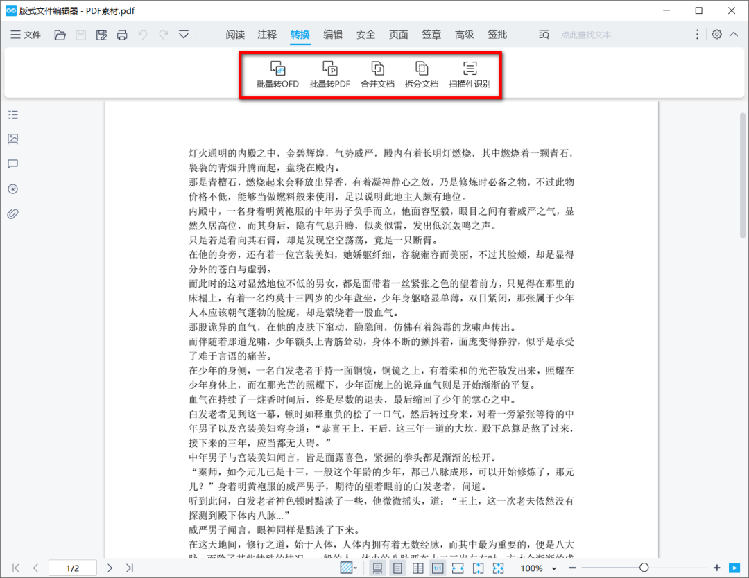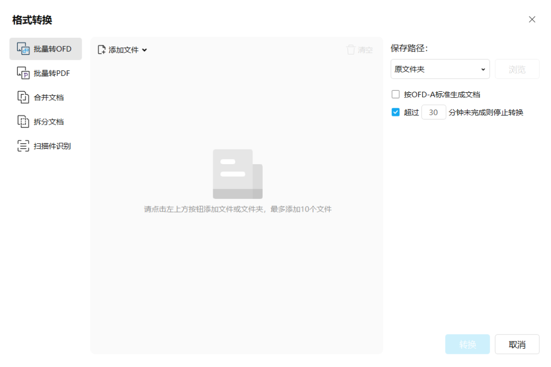 转换:支持批量转OFD,支持批量转PDF,支持合并/拆分文档,支持扫描件识别。
