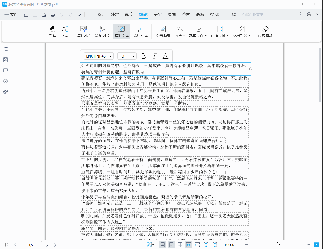 编辑:支持编辑、添加图片/文本,支持添加文档水印,支持裁剪页面,支持添加/更新/删除页眉页脚,支持添加/更新/删除文档背景,支持内容擦除。