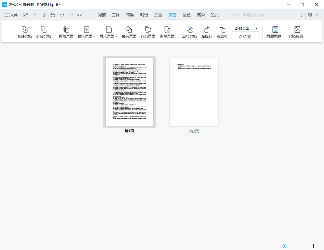 页面:支持提取页面、插入页面、导入页面、替换页面、交换页面和删除页面,支持旋转文档。