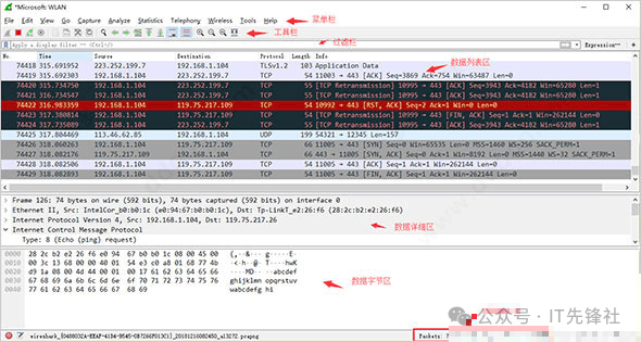 本文介绍了Wireshark这款强大的网络封包分析软件,分享了关于如何进行详细抓包的实用指南。首先,打开Wireshark并选择需要抓取的网络接口卡。接着,设置网络数据包捕获的相关参数,接着便启动了网络数据包的捕获过程。在整个操作期间,可以通过设定特定的过滤条件来对数据包进行筛选,以便更精确地获取所需信息。通过过滤,可以专注于特定协议如ICMP的数据包。在抓包工作结束之后,可以随时重新启动数据捕获过程,或者终止当前的抓包操作。此外,Wireshark还使用不同颜色标识不同协议的数据包,便于分析。
