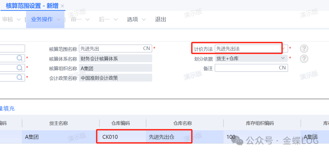 在实际数据运行之前,先将对应的计价方式的核算范围给创建好。