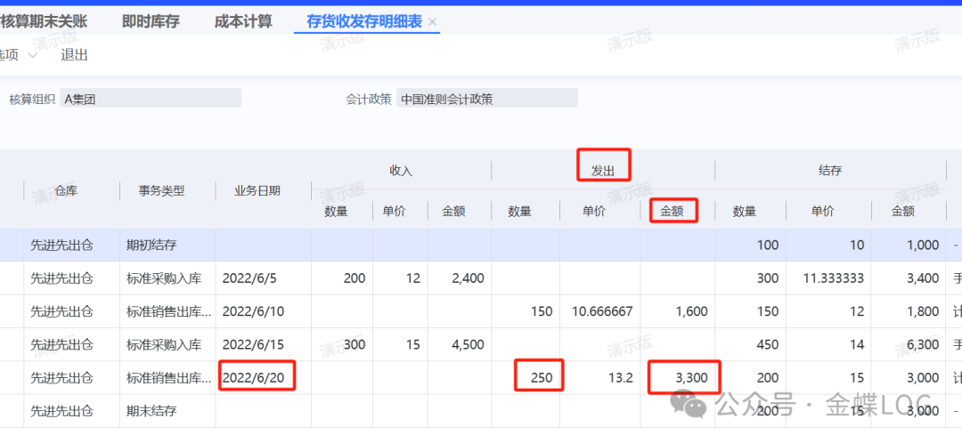 上表的最终期末结存数量为:100 + 200 - 150 + 300 - 250 = 200个。那么我们来看下发出的单价是如何取的。