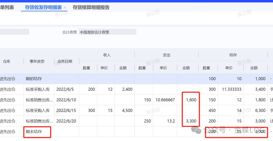 • 期末库存价值 = 200个 × 15元 = 3000元