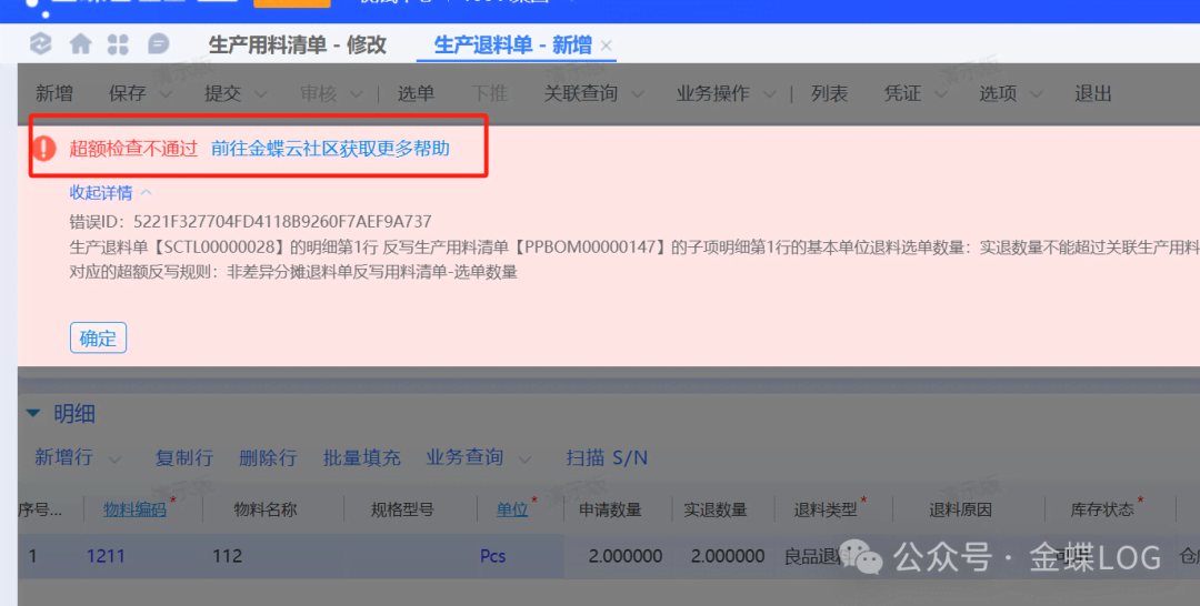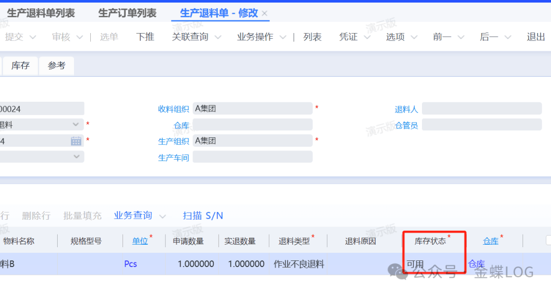 [点晴模切ERP]金蝶云星空“良品退料”、“来料不良退料”和“作业不良退料”在生产退料单上的作用