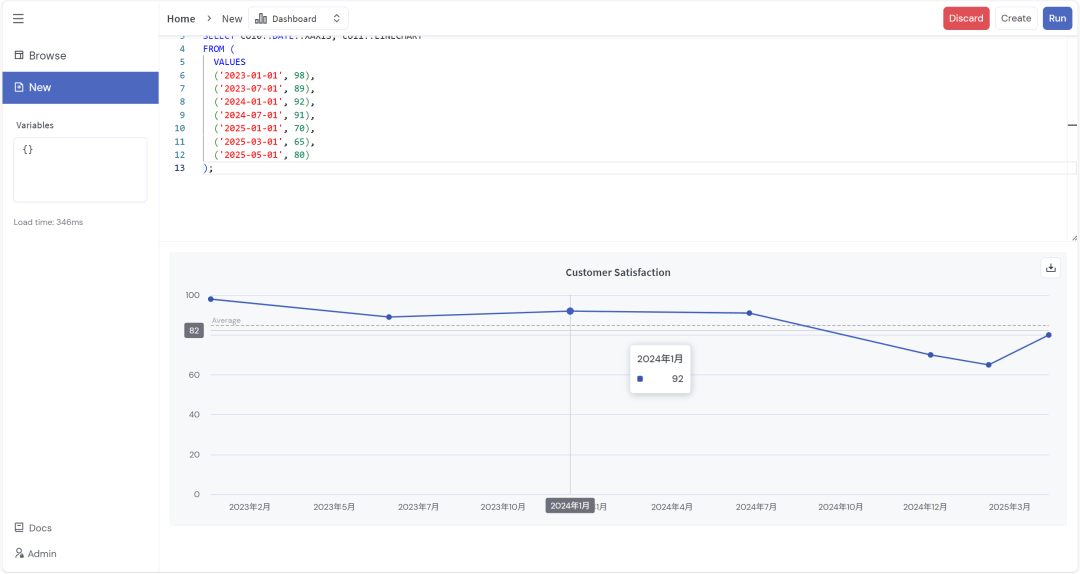 一键部署Shaper的安装体验非常友好,官方推荐使用Docker进行快速部署,这几乎是最简单的方式。只需一行命令: 这条命令会拉取最新镜像,将容器的5454端口映射到本地,并挂载一个本地目录用于持久化数据。执行后,在浏览器中访问 效果展示我们写完一段 SQL,查出数据。在别的工具里,你得手动去点选“这里用柱状图”、“那里显示成表格”。在 Shaper 里,你不用离开编辑框。你直接告诉它: 然后它就真的给我们生成一个可交互的图表: