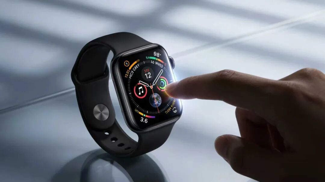 动作:手指触碰屏幕,表盘亮起并切换界面,光影随屏幕内容变化。
