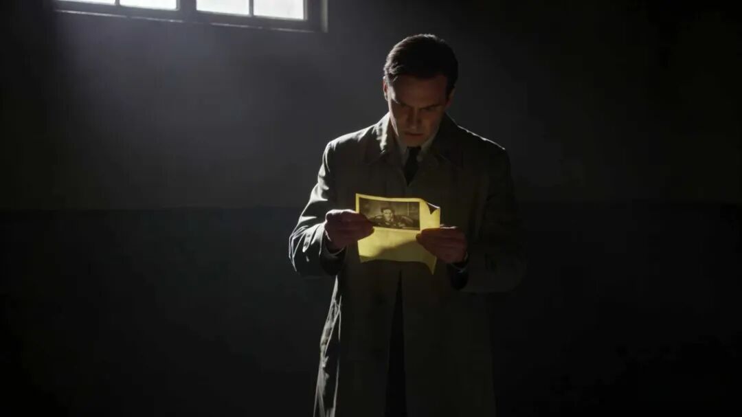 动作:侦探低头看照片→身体微颤→抬头眼神锐利,配合镜头轻微震动。