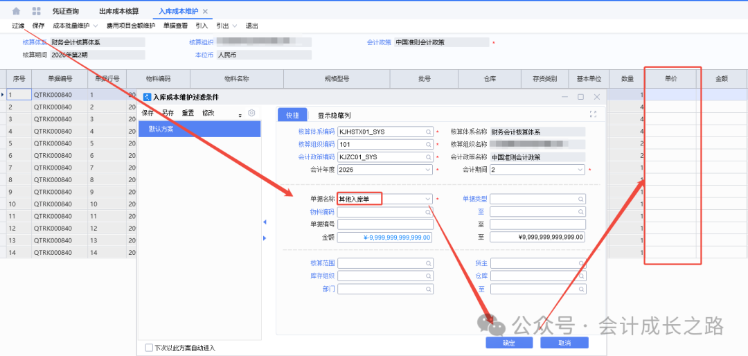 10、其他入库单价格维护(成本管理-存货核算-入库成本维护),单价维护后,金额自动生成(本月这单是供应商免费样品,就不用维护价格)。