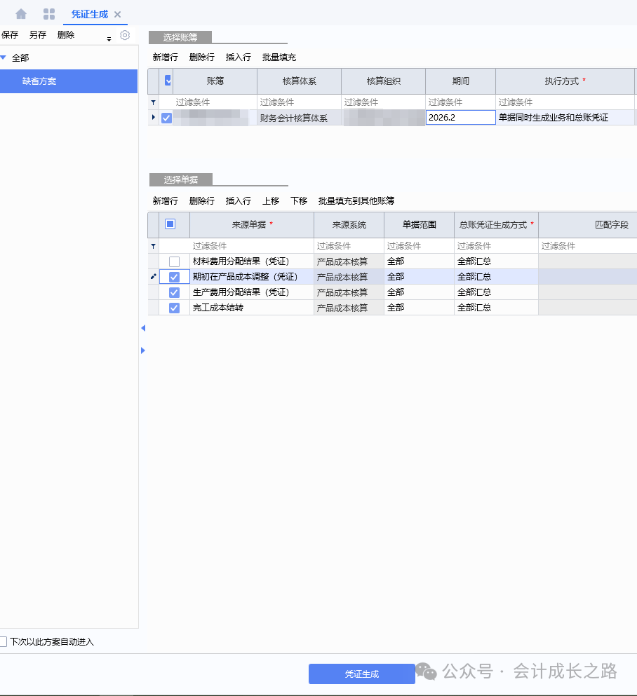 成本管理-产品成本核算-凭证生成-完工成本结转/期初在产品成本调整生成凭证。