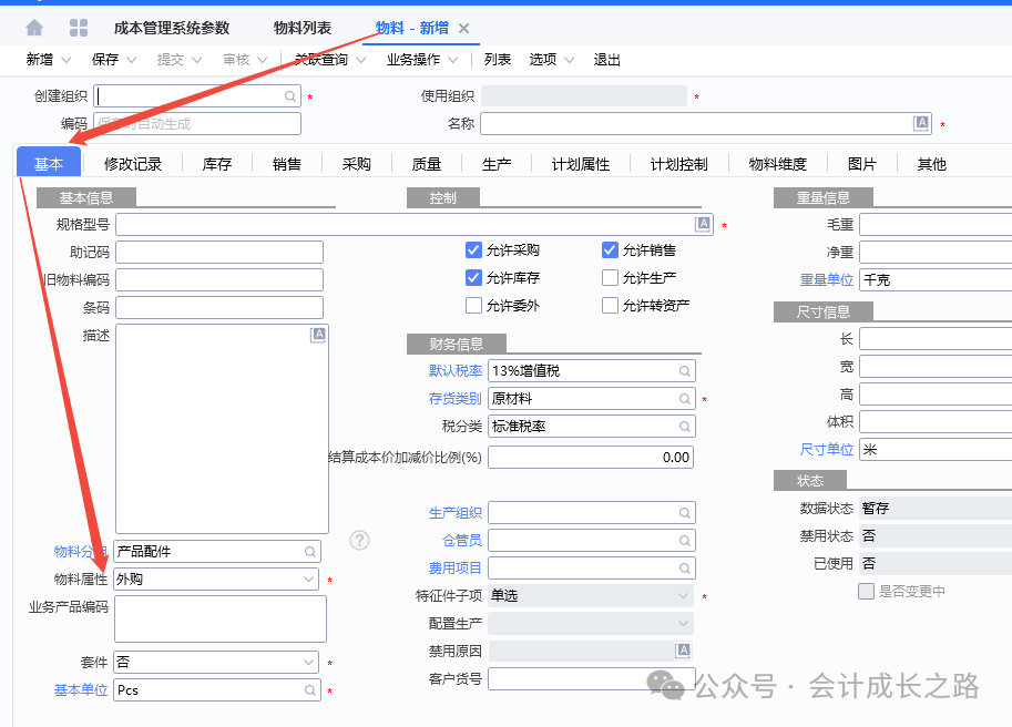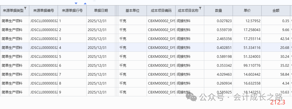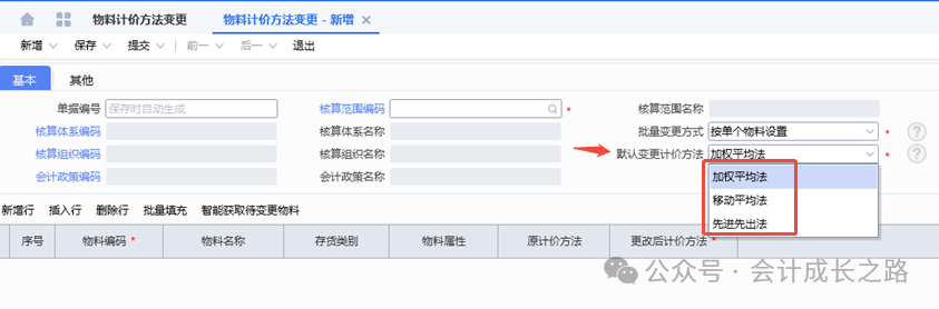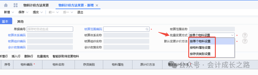 2、金蝶云星空物料计价方法设置:成本管理-存货核算-核算范围-新增设置。3、每个存货价值区域都可有其独立的计价方式,比如某核算范围的计价方法是加权平均、但该核算范围下有某类特殊物料要按移动平均计价,则可以采用此物料计价方法进行设置(一般不建议使用)。4、物料属性在新建物料时定义,目前金蝶云星空不支持自定义修改添加物料属性,只能使用标准系统预置的物料属性,强行自定义添加会导致该属性物料无法正常参与存货核算。5、物料计价方法变更: 主要是指企业采用某计价方法核算一段时间后,因管理或对外报告的需要需采用另一种计价方法进行核算,这样就需通过物料计价方法变更对现有计价方法进行变更。变更之后无法反审核删除,需谨慎使用。6、金蝶云星空目前没有个别计价法,要达到个别计价法功能,需要借助批号来执行,在每个物料的物料维度库存属性批号行勾选影响出库成本可以实现。通过生产订单下的生产领料单、生产补料单、生产退料单归集(投入金额),根据BOM表定额耗用量在完工产品和在产品之间分配。例如:本期生产数量30000只,合理损耗210只,直接领料金额25483.91,倒冲领料金额2409.27(完工数量25477只)间接领料分摊金额212.3(完工产品承担)本期投入直接材料金额=25483.91+2409.27=27893.18;本期间接材料金额=212.3,全部分摊到完工产品。本期完工25477只,合理损耗=25477/30000*210=178只;(25477+178)/30210*25483.91+2409.27=24050.77;期末在产品4523只直接材料金额=27893.18-24050.77=3842.41。本实例涉及了多种领料方式、合理损耗、共耗材料分摊,是比较复杂的一种分配过程。实际操作中物料材料金额分配不是课本中单纯的根据总金额/总数量*入库数量或者未入库数量得到的。需要从业务逻辑多方面考量。