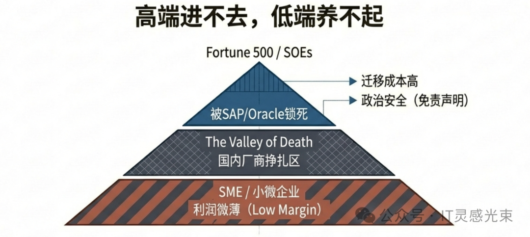 第四个原因:大企业市场被外资锁死,中小企业市场利润太薄