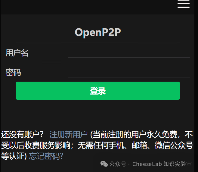 安装成功后,打开OpenP2P网页端,你将看到配置界面。