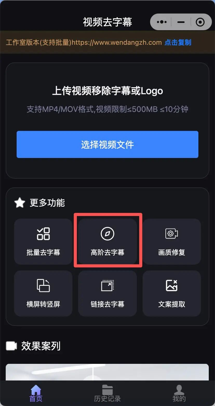 :打开软件后,直接寻找“高阶去字幕”或“视频去水印”功能入口。这个功能不仅能去字幕,也能处理动态Logo。