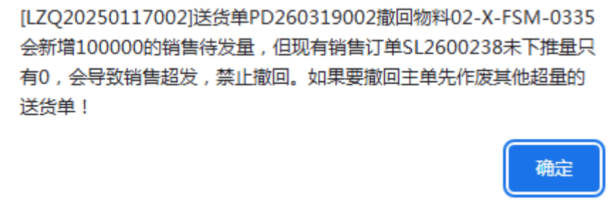 :送货单操作撤单时提示会导致超发,禁止撤回,如何处理?