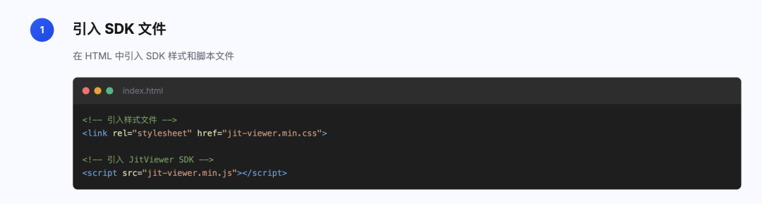 我在 jit-viewer 文档中写了详细的使用教程,并提供了完整的API,下面给大家分享一下:没错,就只需要上面的3步,就能轻松把sdk集成到项目。如果大家想看详细的文档演示和API介绍,可以参考我们的线上文档: