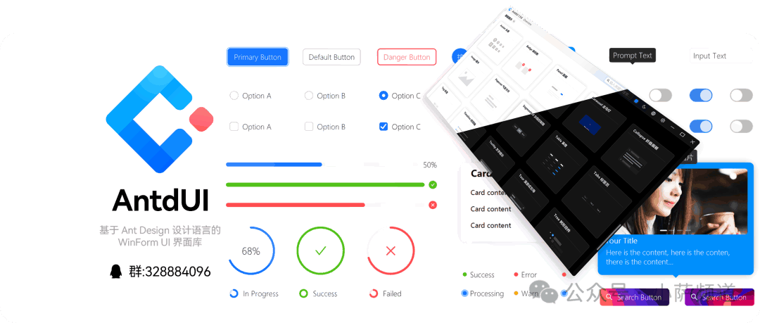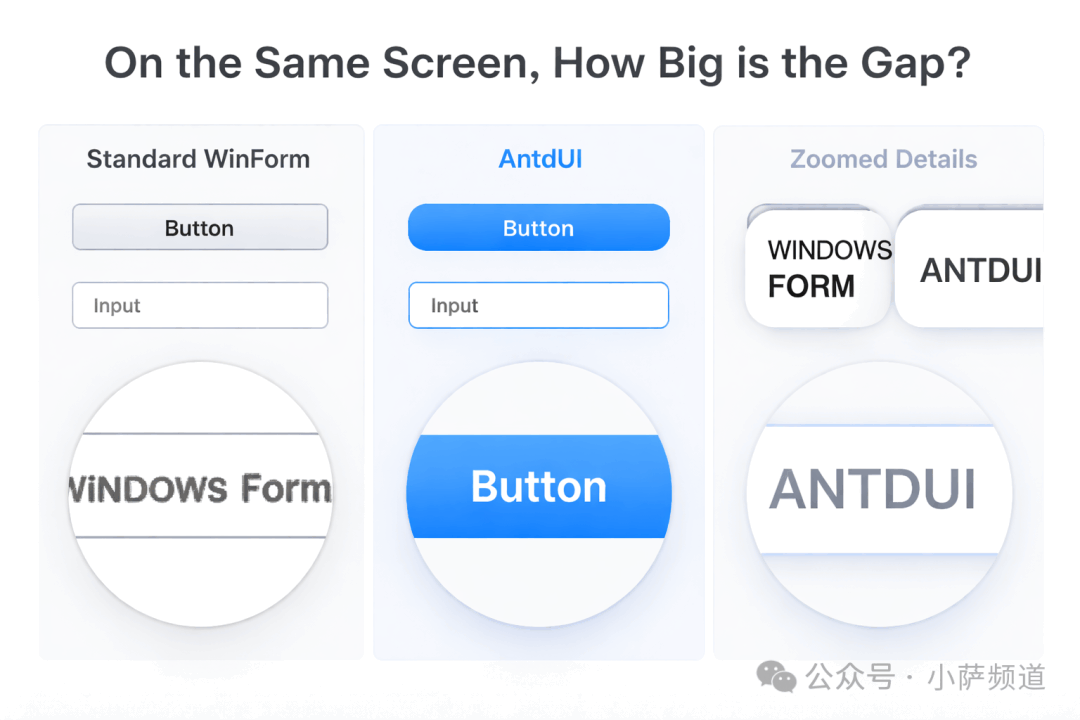 WinForm开发者,最怕听哪句话?不是"这个需求要改",不是"发布又报错了",而是—— “这界面太丑了,换一套。” 换一套?WinForm就长这样。按钮是灰的,输入框是白的,表格是土的。你跟产品说这是微软亲儿子,人家回你一句:亲儿子长这样? 但有一群人,不服气。 他们把Ant Design的设计语言,搬进了WinForm。60多个控件,全部纯GDI绘制,不需要任何图片资源。AOT编译后一个exe,扔给用户直接跑,连.NET运行时都不用装。 这个项目叫 AntdUI。 一、先说清楚一件事:AntdUI,是什么很多人听到"WinForm UI库",第一反应是:又是那种换皮的控件包? 不怪大家有偏见。市场上确实存在大量"换皮"方案——拿别人的图标,改一改颜色,包装成新产品。但AntdUI做的事,本质上不一样。 AntdUI是重写,不是换皮。 它用纯GDI矢量绘图,从底层重新绘制了每一个控件。没有继承TextBox,没有套用系统原生样式,所有界面元素——包括按钮、输入框、表格、弹窗——全部是一行一行代码画出来的。 这意味着什么? 意味着你看到的每一个圆角、每一处阴影、每一个动效,都是代码控制的矢量图形。放大缩小不失真,任意DPI都清晰。没有图片资源,exe体积就是小。 Ant Design设计语言是什么?是蚂蚁金服开源的那套前端UI框架,国内无数Web产品都在用——配色讲究、间距合理、动效舒适。AntdUI做的事,就是把这套美学,完整迁移到WinForm桌面端。 你在Web上见过Ant Design的好看界面,现在,你的WinForm程序也可以长那样。