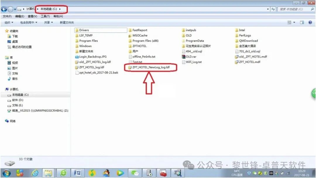 注意:c:\ZPT_HOTEL_NewLog_log.ldf是新日志文件的存放路径和文件名,可以根据实际情况,自行设置。新建的日志文件的存放路径,建议和原数据库存放在同一个文件夹。文件名不要和原日志文件的名称相同,否则会报错。如在此实际中,原日志文件的名是ZPT_HOTEL_Log_log.ldf,我新建的日志文件名是:ZPT_HOTEL_NewLog_log.ldf