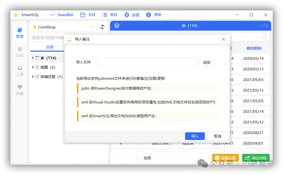 SmartSQL 导出的 XML:之前用 SmartSQL 导出的 XML 文件,可以再导入回去,用于迁移或备份注释数据。