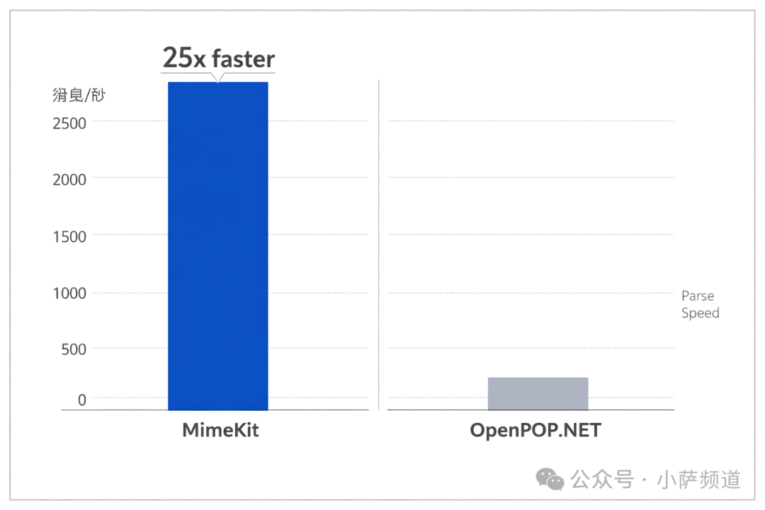 作者是 Jeffrey Stedfast——.NET 圈子里做 MIME 解析最认真的人之一。他同时维护着 MimeKit 和 MailKit,前者是 MIME 解析引擎,后者是协议客户端。MimeKit 的解析速度比 OpenPOP.NET 快了整整 25 倍,而且内存占用极低,因为它直接从 socket 流式解析,不存在先把整个邮件拉进内存再慢慢处理这种操作。