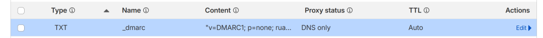 p=none 表示目前只监控,不拦截。等你确认发件正常之后,可以改成 p=quarantine(进垃圾箱)或 p=reject(直接拒绝)。
