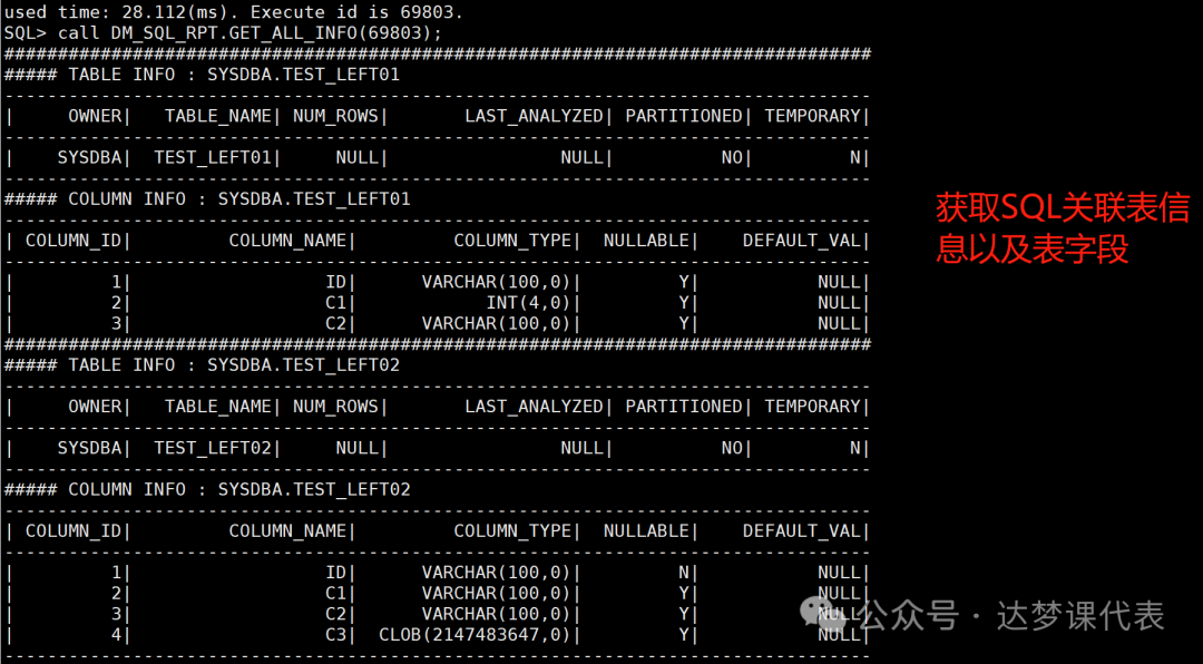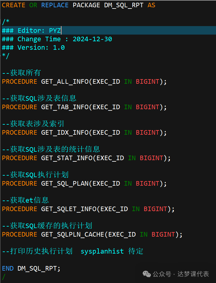 基于上述原因,DM_SQL_RPT是一个达梦的PACKAGE包,通过每个功能封装存储过程的形式,把原本分散的分析动作做成了一套固定流程。