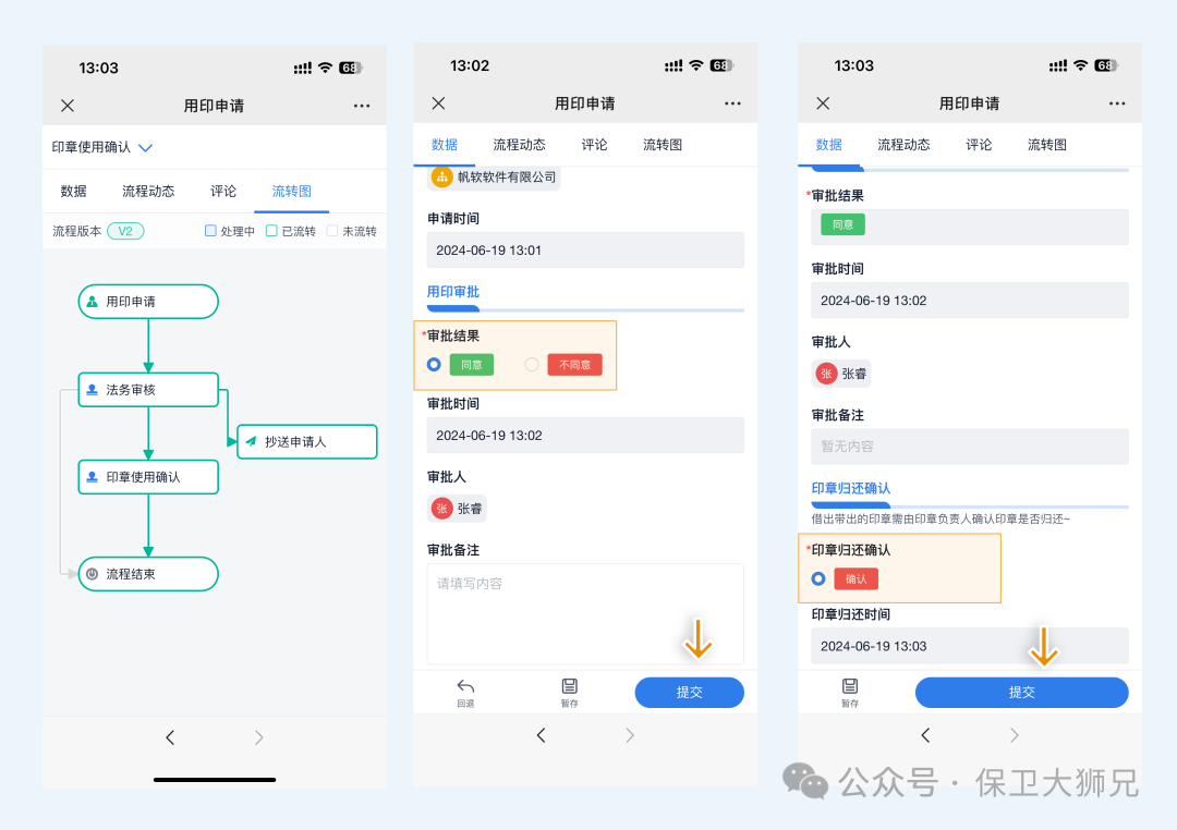 流程不再是一个单独存在的审批模块,而是直接嵌在业务动作里。比如: