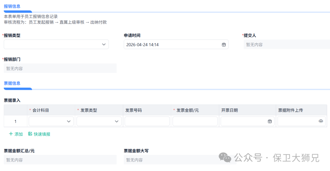 • 报销,可能就是上传单据