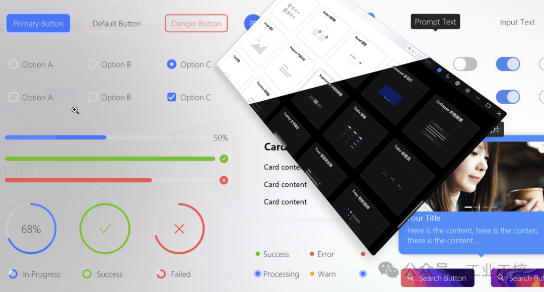 这是一个基于 Ant Design 设计语言的 WinForm UI 界面库,用纯 GDI 绘图,不需要任何图片资源,就能让你的桌面应用拥有现代前端级别的视觉效果。