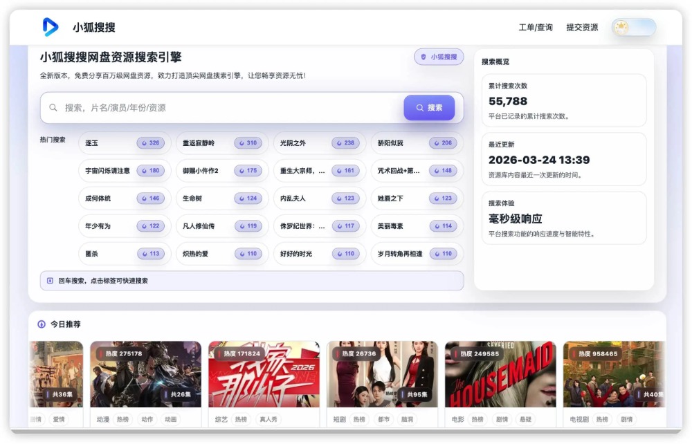 [点晴永久免费OA]小狐搜搜:一个免费的网盘资源搜索引擎,快速查找影视、剧集、综艺等网盘资源