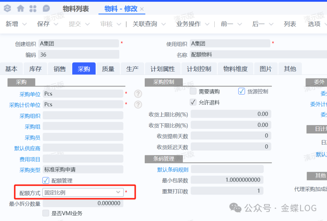 Q问题描述在企业的采购业务中,将一笔采购需求按照一定的比例自动分配给多个供应商,是常见的货源管理需求。那么在系统中应该要如何操作实现这种需求呢?本次我们便来学习配额下单中的第三种方式——【固定比例】。学完本篇文章,您将学会:①物料配额下单“固定比例”的作用②物料配额下单“固定比例”的实操案例 A问题解答一、什么是配...