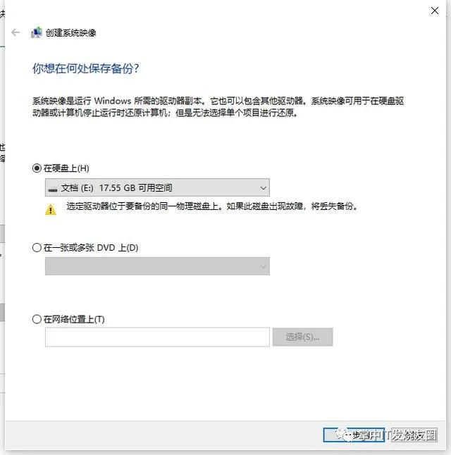 一、备份: 按照如下路径进入系统备份功能界面:“开始” --> “设置” --> “更新和安全” --> “备份” --> “正在查找较旧的备份” --> “转到"备份和还原(Windows7)” --> “创建系统映像” 1、选择系统备份文件的存储位置,可以选择另一块硬盘的任意分区,最好是备份到其他外部存储里面,如:U盘或者移动硬盘。