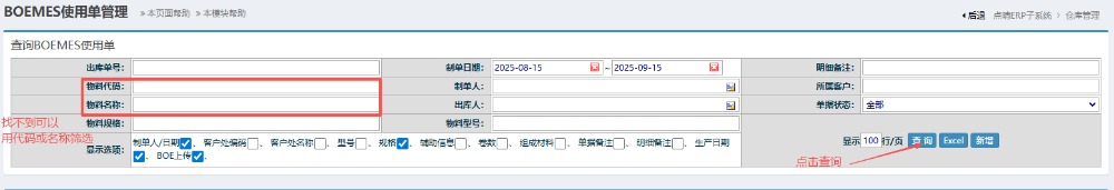1.进入ERP系统之后,在左侧功能菜单里找到“BOE定制”,点开后点击“正常加工”,找到“新增MES组件使用单”
