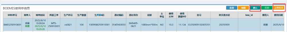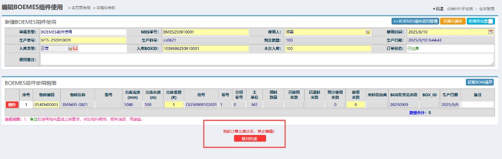 5.提交之后,回到左侧功能菜单找到“MES组件使用单出库”。