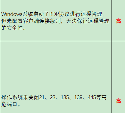 问题3、系统开启了远程登录但未开启RDP安全层,开启了135-139、445等高危端口解决方面:这类问题属于基线配置问题,手动处理就好,既不用氪金也不用费多大力气,21、23、139、445等高危端口通过Windows、Linux防火墙进行限制就好,如果确实用不到,直接关闭就好。至于未开启RDP安全层那就更简单了,在本地组策略编辑器里开启就好问题4、系统密码策略不合规、未配置登录失败处理功能解决方法:这类问题也是基线配置问题,手动配置了就行,Windows系统在本地安全策略中,Linux服务在/etc/login.defs /etc/security/pwquality.conf(centos)、/etc/pam.d/common-password(Ubuntu)等配置文件中。问题5、系统未安全杀毒软件、杀毒软件病毒库未及时更新解决方法:如果是内网,使用的360、火绒之类的,卸载重装即可,如果是可以连通互联网,直接安装即可。如果是按照企业版的杀毒软件、EDR等等,咨询对应的厂商更新即可问题6、网络架构划分不合理,内外网混用,未针对业务、终端等使用者类型进行划分VLAN、安全策略严重失效,存在any策略等等。解决措施:1、网络架构不合理、内外网混用问题,这个问题需要采购设备进行大力的整改,将内外网进行分离,中间采用网闸进行隔离。2、未针对业务、终端、管理等业务类型进行划分VLAN,进行网络架构重新规划,业务、终端、管理三者分开,在网络层通信上可以通过VLANIF进行通信,然后还可以通过防火墙来做相互之间的访问控制,达到精细化控制的效果。3、对防火墙策略、交换机ACL进行细化,删除any to any策略,清除无效的、冗余的策略。解决办法:这种类型的问题就是远程管理手段使用了http、Telnet这类的远程管理方式,没有采用加密手段,无法保证数据在传输过程中的完整性和机密性,因此整改手段就是:1、针对安全设备,关闭telnet、http等方式,web上开启https方式,登录后台开启ssh方式。而且ssh要是v2的版本。2、网络设备,关闭telnet、http的管理方式,开启stelnet、https、ssh的方式进行远程管理。解决办法:禁止root用户直接登录,通过普通用户进行登录,再su切换到root用户。问题9、信息系统没有任何的备份措施,连本地备份也没有,这个也是一个高风险项。解决方法:三级及以上的信息系统原则上要求异地备份,但实际上如果有本地备份也是可以的,不能完全消除测评的问题,但是可以从高危降为中危,这样就不存在高危问题了,如果其他方面整改的比较好,达到70分以上,就可以通过等保测评。如果要实现本地备份,可以通过自建备份服务器,通过脚本等方式实现自动化备份数据,要么就购买备份一体机。问题10、信息系统存在高危漏洞、例如XSS漏洞、SQL注入漏洞、越权漏洞等等,漏扫扫出来一大堆紧急、高危的漏洞等等。解决方法:对数据库进行打补丁或者对数据库进行版本升级,但是这肯定会影响业务,根据情况来决定。如果无法完成打补丁或者版本升级,那么就使用防火墙来限制,漏扫扫不到那就证明没有